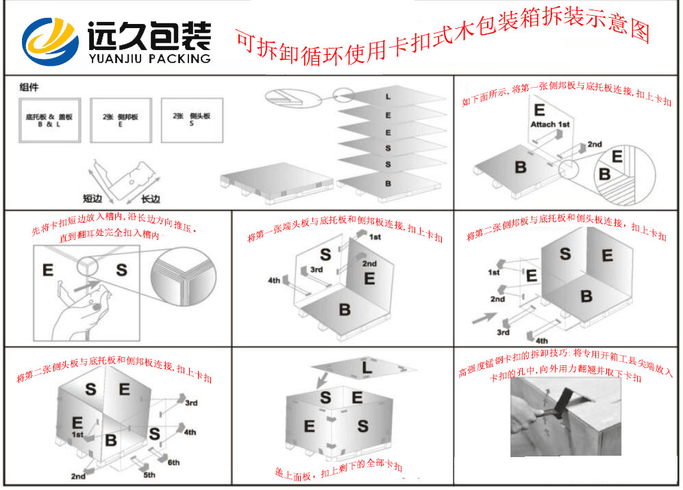 隨著我國包裝業(yè)在近十年中的迅猛發(fā)展,木箱包裝的功能也從傳統(tǒng)的、單一的運輸保護功能逐步轉變?yōu)榫哂姓w概念的、綜合類型的包裝方案,而且也有了以客戶需求科價值鏈為導向的包裝解決方案。 對于被包裝產(chǎn)品來說,對其進行運輸包裝其實就是要基于被包裝產(chǎn)品及木箱包裝本身的生命周期,充分考慮產(chǎn)品及木箱包裝制作與供應、倉儲與運輸、從包裝裝配到廢棄物的回收與處理等全部過程中,進行一個整體的包裝解決方案設計。 在我國也針對木箱包裝設計制訂了國家標準,GB/T 19451-2001《運輸包裝設計程序》,規(guī)定了運輸木箱包裝設計的基本要求、方法和一般程序。 工業(yè)木箱包裝主要是為了便于運輸裝卸和倉貯,卡扣木箱作為一款包裝容器,一經(jīng)上市就受到廣大用戶的喜愛,是因為它有很多的優(yōu)點,傳統(tǒng)的木箱一般通過釘子進行固定,裝卸不便,且一次使用后易對其造成損壞,不便多次使用。 在拆卸、拼裝、運輸貨物的過程中,金屬件對膠合板的造成嚴重的破壞,金屬件與板材的連接存在越來越大的空隙,箱板之間的連接不夠緊密,木箱的使用壽命變短??勰鞠浒b結構簡單,快裝易拆,它不同于柵欄式花格木箱每一個部件都需要采用鐵釘連接,卡扣木箱的箱體只有六塊,組裝時只需將六塊箱板用高強度錳鋼連接件連接。 木箱包裝是運輸包裝件的重要組成部分,在流通過程中主要起保護產(chǎn)品、方便運輸?shù)淖饔?。除了通常對木箱包裝有結構、形狀、材質等方面的要求具有一定的機械強度,以保護產(chǎn)品在裝卸運輸和倉儲條件下完好無損。還應專注于各類包裝材料功能性、生產(chǎn)工藝性及相關理論方面的東西。 卡扣木箱包裝廠家選用的材料均為經(jīng)過高溫處理過的膠合板或定向刨花板(也叫OSB),出口免熏蒸是它的優(yōu)勢;卡扣木箱包裝在組裝封箱時,應防止已長霉材料和有機物質混入包裝件中,在包裝件運輸過程中力求干燥和通風,發(fā)現(xiàn)卡扣包裝箱內(nèi)的包裝件有長霉現(xiàn)象應及時處理,以免傳染其它包裝件。根據(jù)GD/T 4768-1995標準,包裝材料耐霉程度可分為以下三種: 1、耐霉材料:此類材料大部分為人工合成材料與無機材料,不能給霉菌提供營養(yǎng)物質。 2、半耐霉材料:這類材料應用最廣,由耐霉與不耐霉材料混合而成,耐霉性不穩(wěn)定,其耐霉程度主要取決于組成物質、添加劑以及混合組成時的加工工藝。 3、非耐霉材料:在霉菌實驗時其長霉程度嚴重,此類材料大都是天然有機材料及其制品,能提供霉菌生長的養(yǎng)料,如紙張、棉紡織品、天然橡膠、皮革等。
